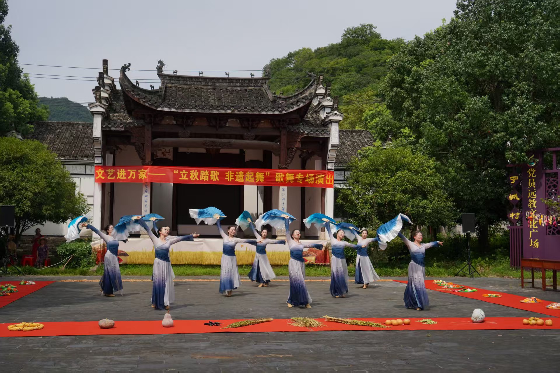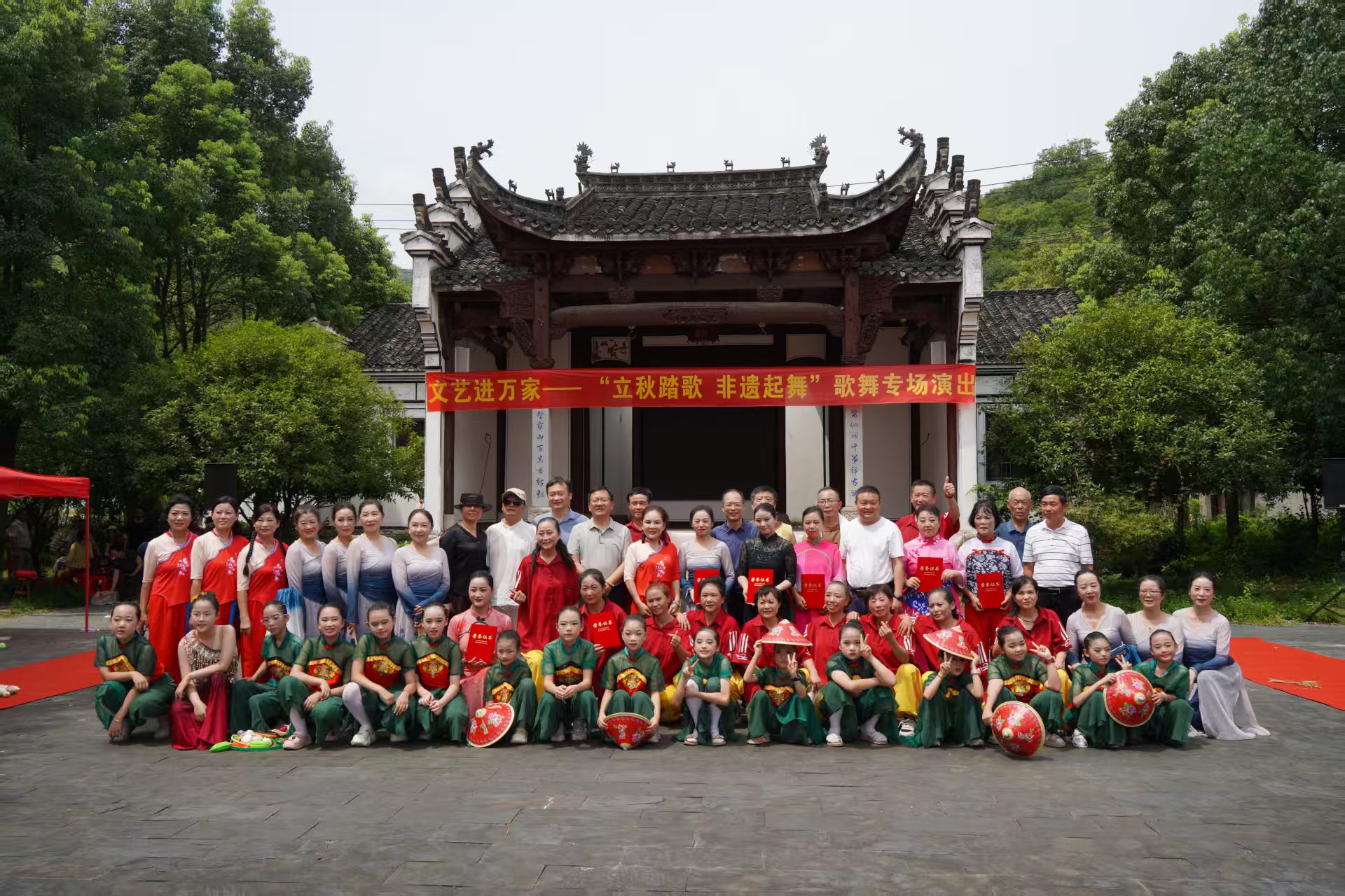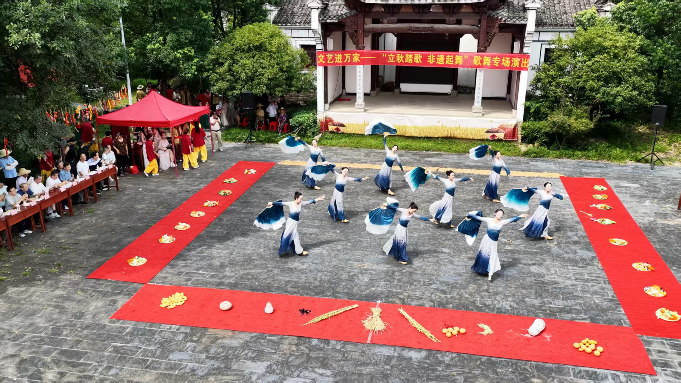 立秋时节,秋风送爽。日前,由池州市文学艺术界联合会主办的“文艺进万家”——“立秋踏歌 非遗起舞”池州市歌舞专场演出,在贵池区墩上街道罗城村渚湖姜村文化广场热闹启幕。池州市委宣传部副部长方新、池州市文学艺术界联合会党组书记章雄军等领导出席活动,与当地群众共赴这场非遗与秋日交织的文化盛宴。