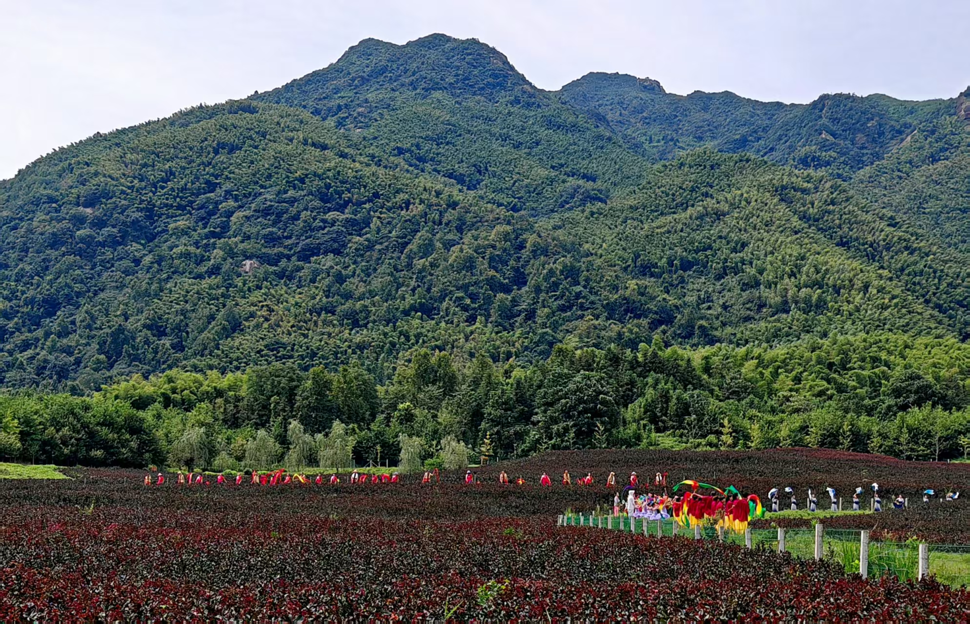 第二篇章“秋日长歌、互动起舞”设在渚湖姜村紫薇花景区,成为活动的一大亮点。省级非遗传承人姜梦玉带领演员与观众学唱贵池民歌,优美的山歌在罗城山间回荡,余音绕梁;随后,王放和唐海霞老师带领大家学跳贵池民歌舞蹈,演员们手执彩绸、彩带和装满果实的筛子等道具,与观众一同舞动,尽情谱写丰收的喜悦。
