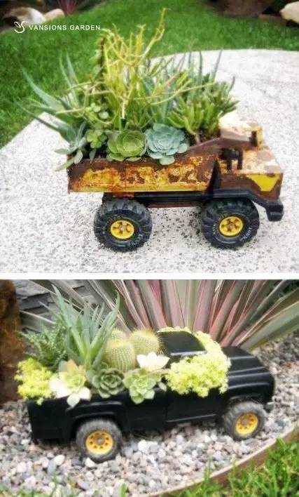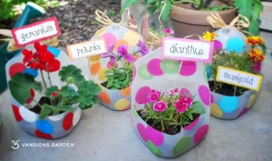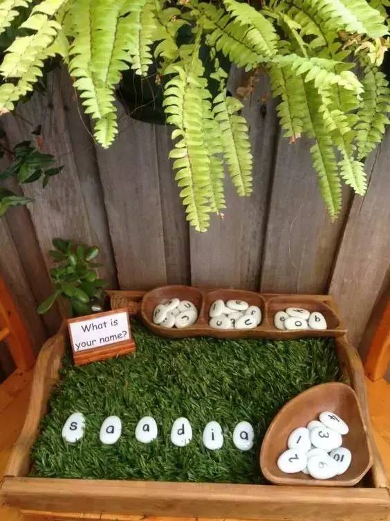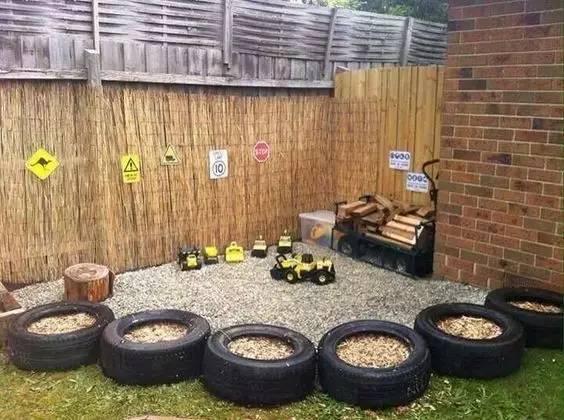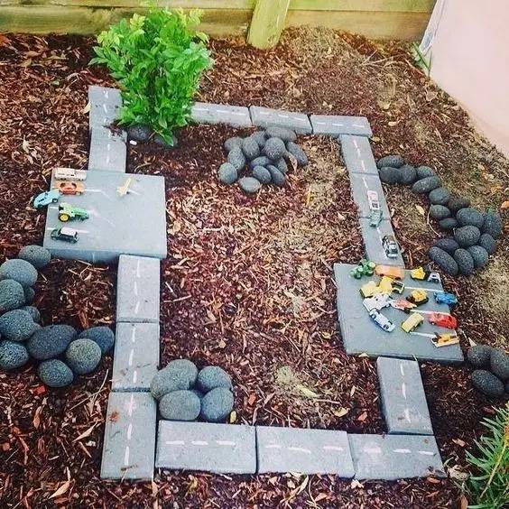 我们可以创造场景,通过DIY制作装饰品,将孩子们平时喜爱的形象或物品结合到庭院的设计中。它们可以是我们日常闲置的物品,如废旧轮胎、木板、花盆、网球等,也可以是我们随手在野外就可以找到的石块,只要有足够的想象力,任何物品都可以充当孩子们的生活玩伴。