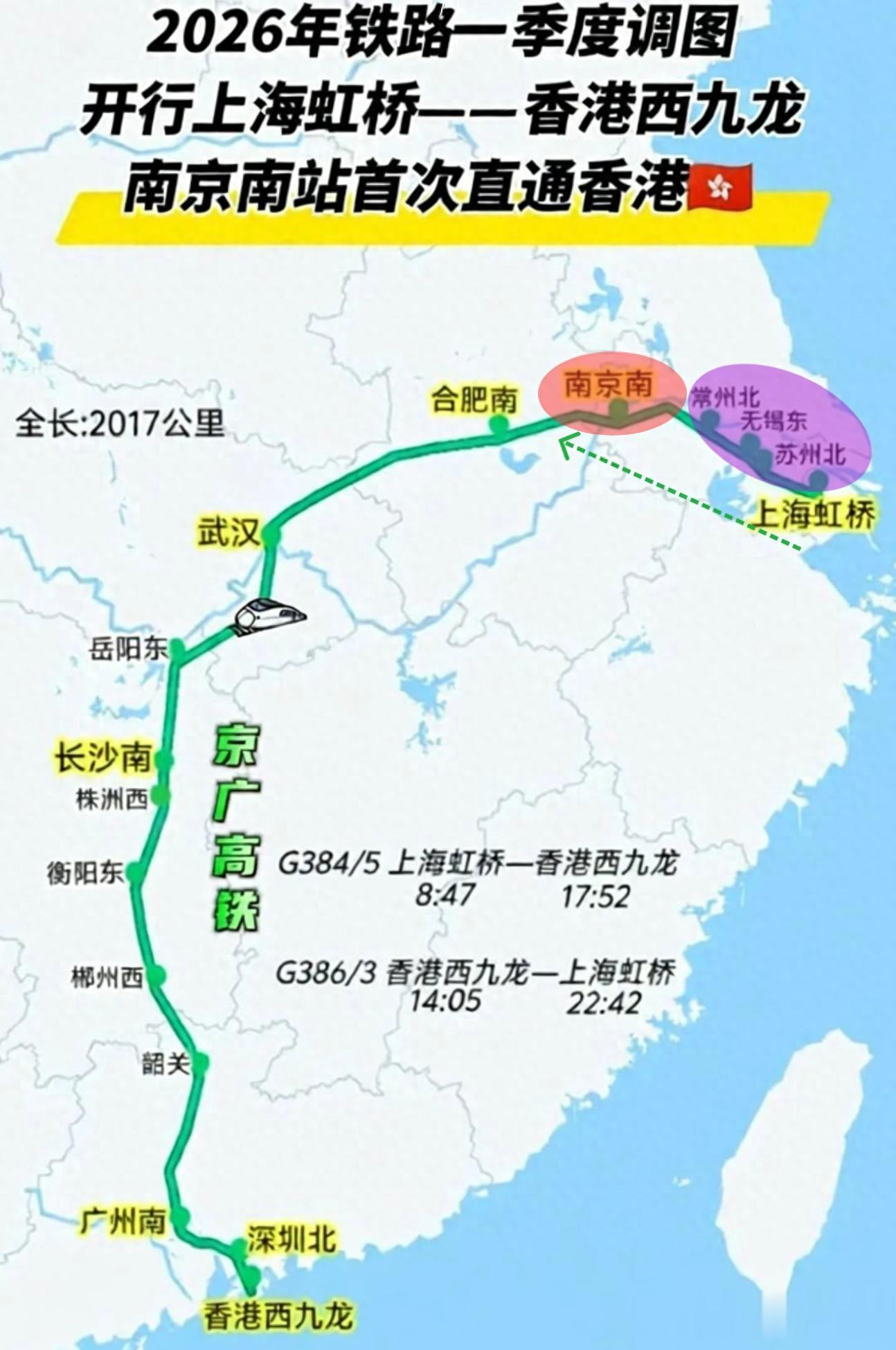 26年,南京、无锡和常州将首次拥有直通香港高铁!