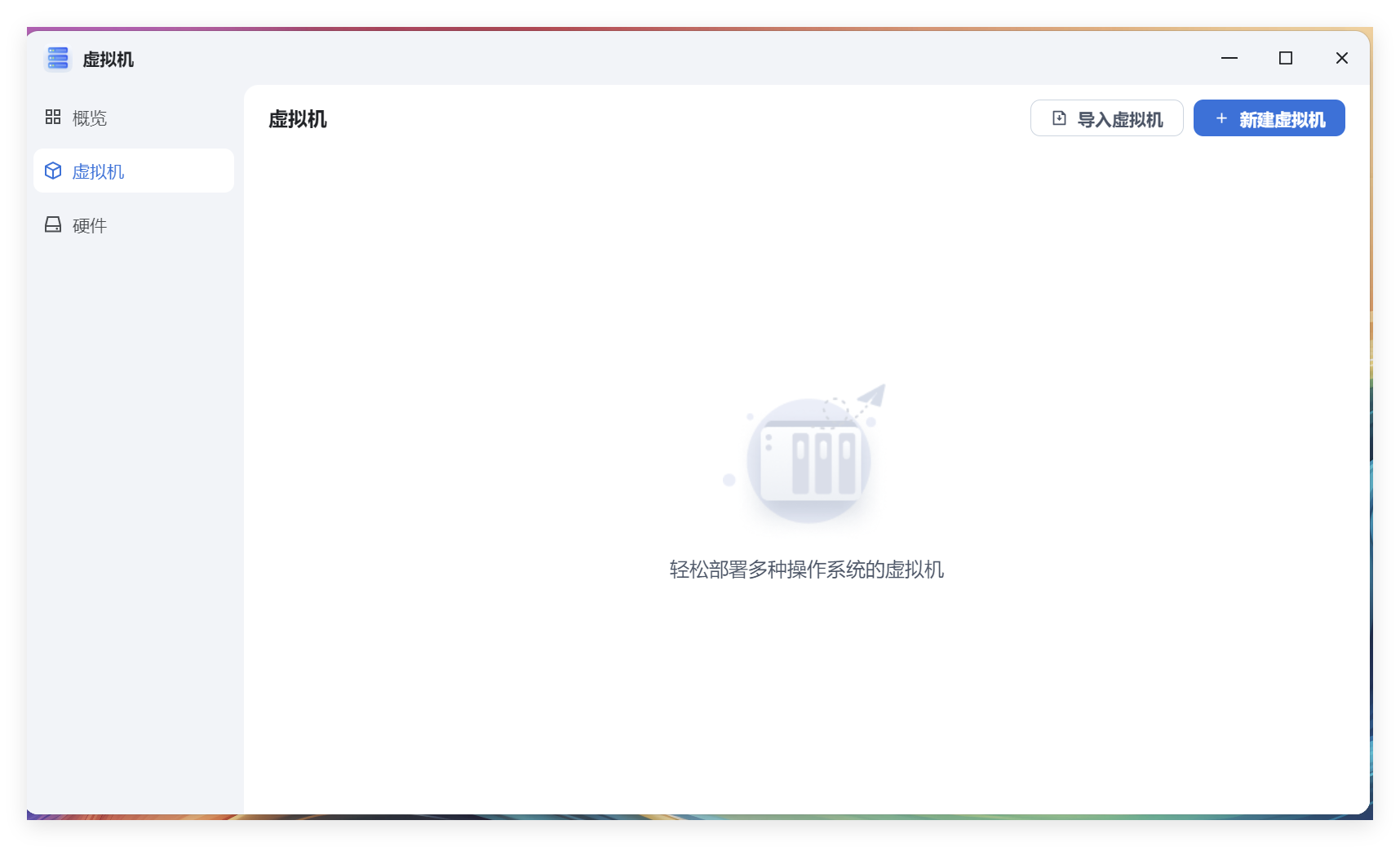 6.5 虚拟机飞牛OS还支持创建虚拟机,只不过默认未安装虚拟机应用,需在应用中心搜索虚拟机并安装。在应用中心搜索“虚拟机”后便会出现对应的应用: