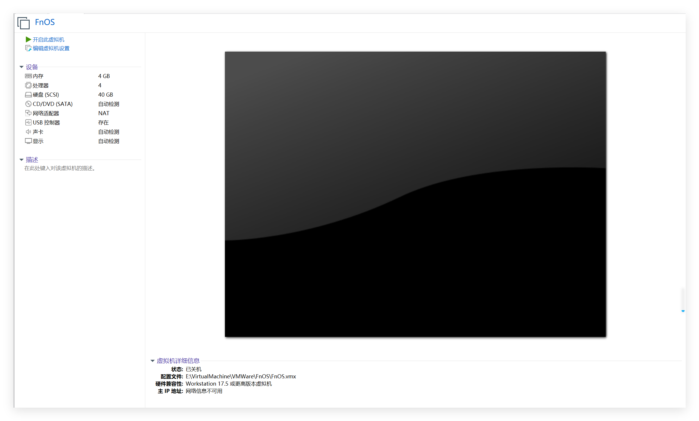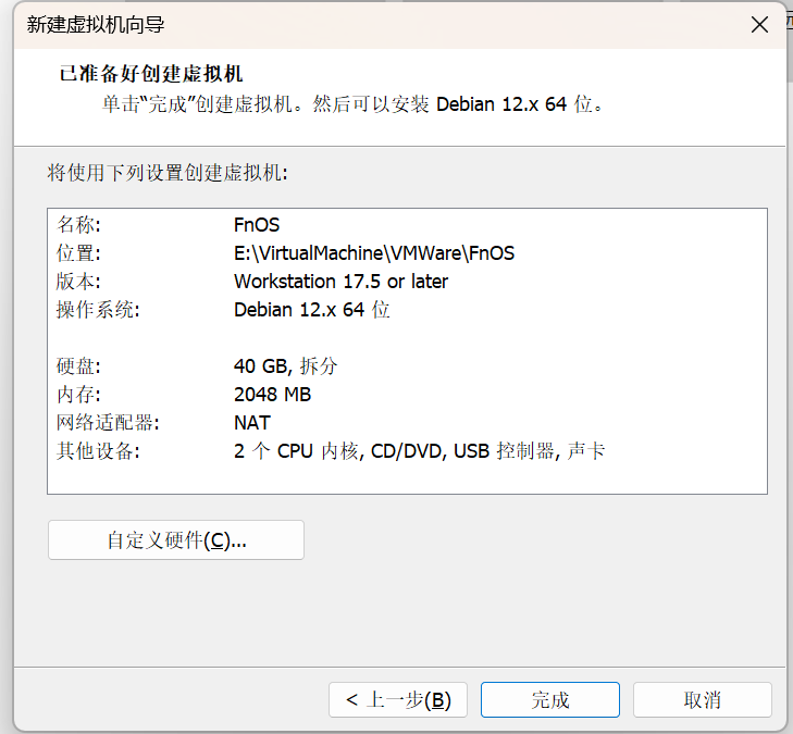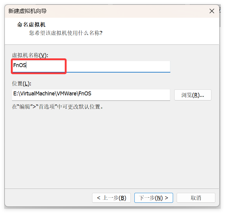 为了见名知意,将虚拟机名称改为FnOS,当然也可不更改,修改后如下: