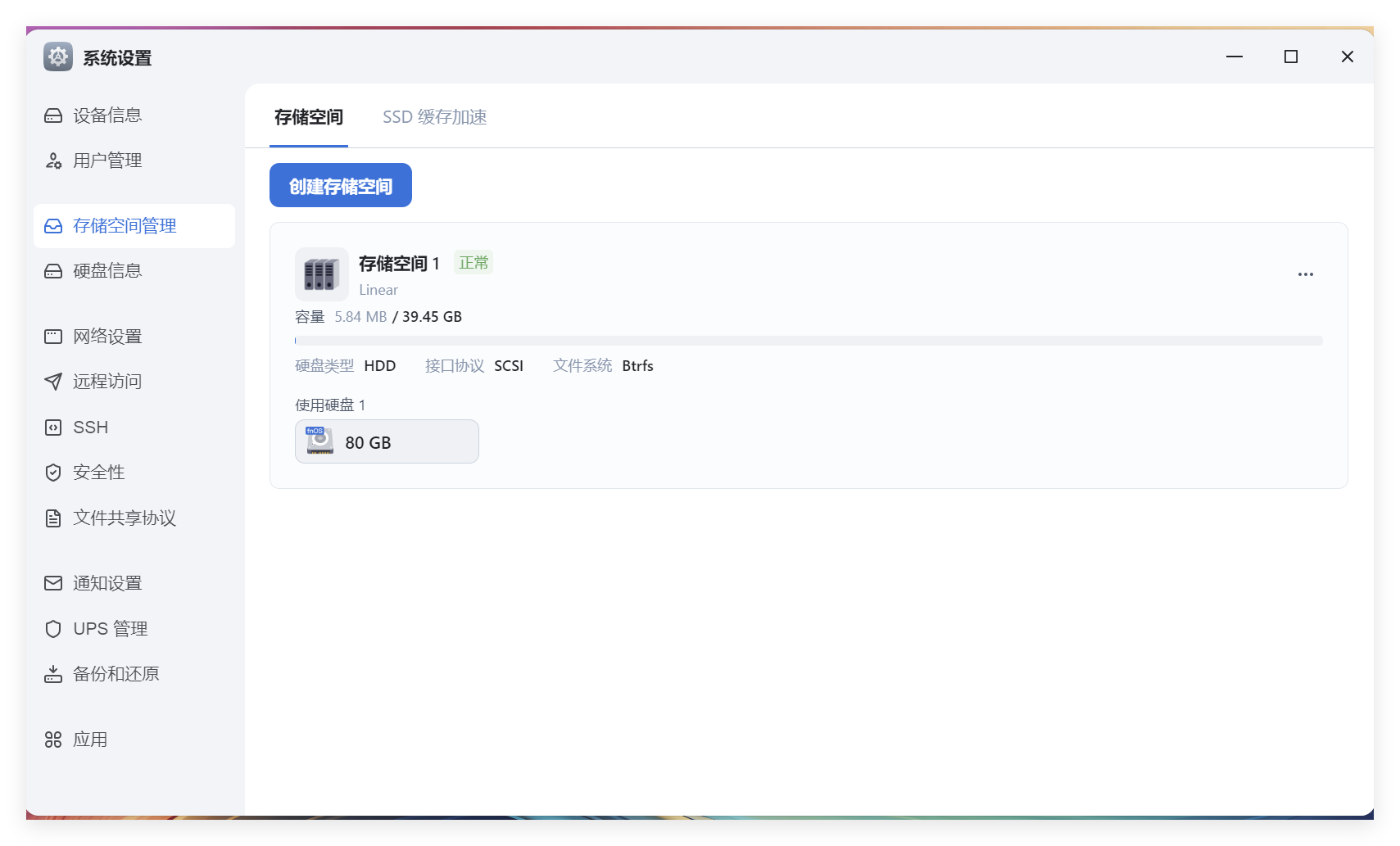 点击“完成”,显示创建后的存储空间: