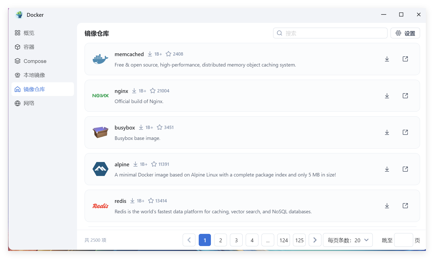 点击桌面的“Docker”便会打开对应应用,打开后的主页面如下所示: