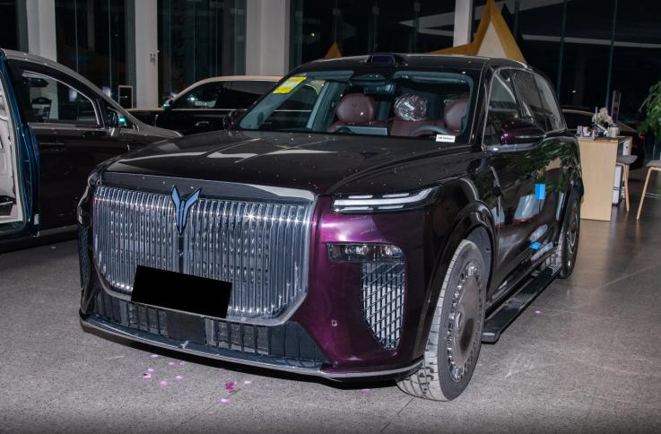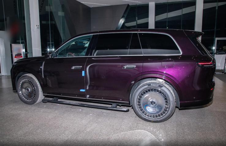 尺寸方面,岚图泰山长宽高5230x2025x1817mm,轴距3120mm,账面参数和问界M9、极氪9X接近。为了营造出大型SUV该有的仪式感,新车在半隐藏式门把手部位采用点阵式星光效果(尊界S800同款),搭配电动侧踏板和迎宾光毯,外加每侧车门下方配备的4颗超声波雷达,实现智能感应电动门功能。车辆尾部的设计较为简洁,尾灯点亮后内部发光结构呈宝石混搭样式,具备较高辨识度。此外,新车还提供了22英寸大饼造型电镀轮辋,并配备了悬浮式轮毂盖,而智己LS9则需要额外加钱选装,这一点值得好评。