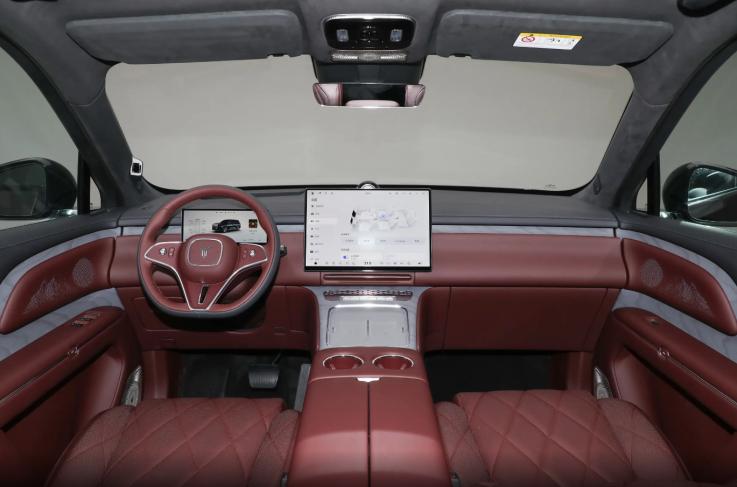 再看内饰,新车采用了新能源SUV中十分常见的双拼色搭配,软包材质横贯前排座舱,方向盘带有镀铬装饰和滚轮等操作按键,应用怀挡式电子换挡机构,握持手感扎实精致,搭配10.25英寸悬浮式仪表和AR-HUD抬头显示来看,外加副仪表台双50W手机无线充电和双杯架,提升了座舱的豪华科技感。此外,新车搭载鸿蒙座舱5,不仅UI交互界面精美清爽,而且支持HSpace-Link多屏拓展,同时成为了首批推送新版鸿蒙座舱语音AI大模型的车型之一。