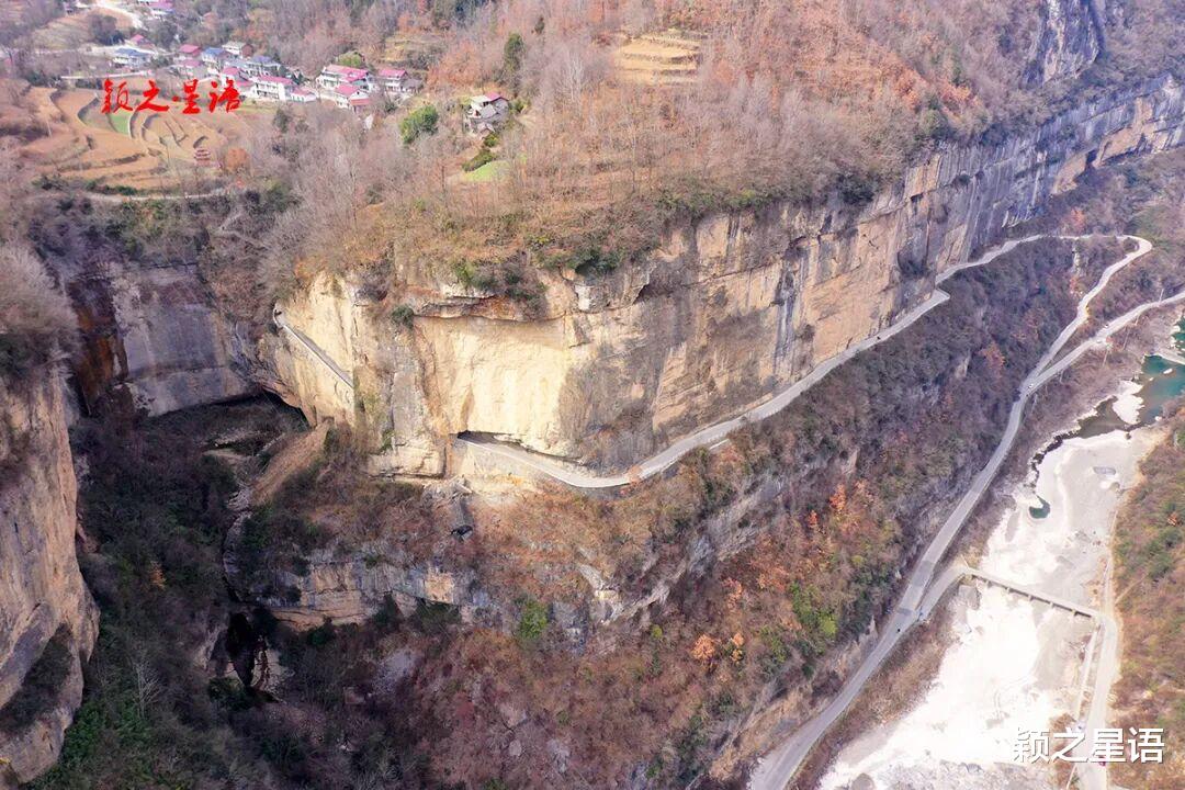 从毛坝河镇继续前行,通往与世隔绝的西方沟村的公路,悬挂于势若刀削斧劈的垂直悬崖绝壁之上,称为西方沟挂壁公路,是自驾旅游与摄影爱好者的向往打卡之地。