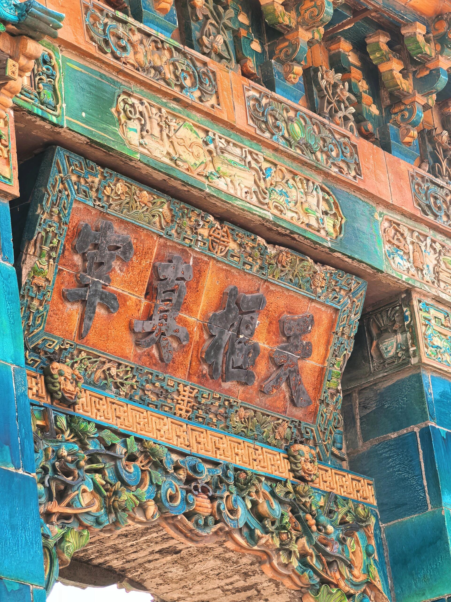 这座建造于清光绪二十三年(1897年)的牌楼,背后藏着晋商巨贾冀氏家族的故事。彼时晋商纵横商界,冀以和耗费十二万白银,为家族出资建造这座真武庙前的牌楼。不同于普通建筑材料的运输,冀家选择在附近搭建琉璃窑,每一块琉璃构件都现场烧制,这种不计成本的建造方式,不仅彰显财力,更体现对工艺极致的追求。当我们触摸那些历经百年风雨的琉璃砖时,仿佛仍能感受到窑火的余温,以及匠人反复雕琢的执着。