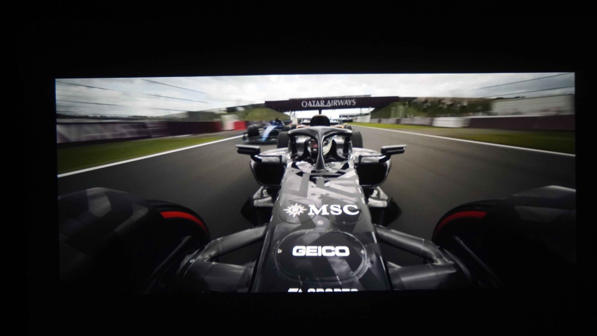 哈趣Q1 Pro保持了真1080P物理分辨率,支持4K视频解码,这一点与Q1一致。我播放了网盘里存储的4K版最新赛车电影《F1》,即使是投射在白墙上,画面细节也展现得相当出色——飞溅的水花、浪花周围的薄雾都清晰可见。