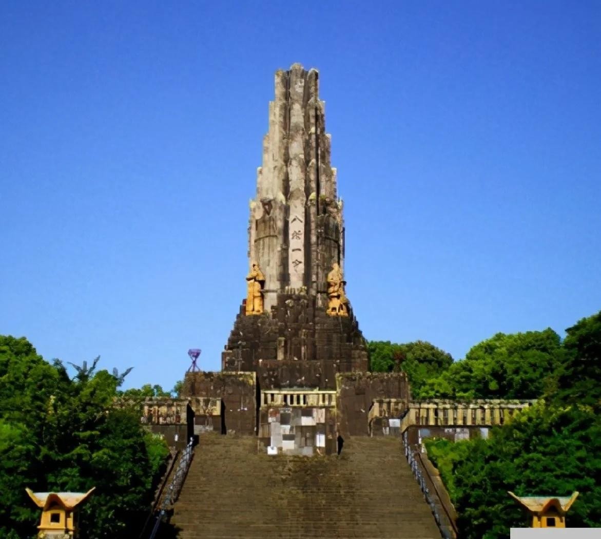 这座塔叫做“八纮一宇”塔,有36米多高,现在有人叫它“和平之塔”,是因为“八纮一宇”原本是中国古籍里的话,说的是天下一家、和平共处的意思。