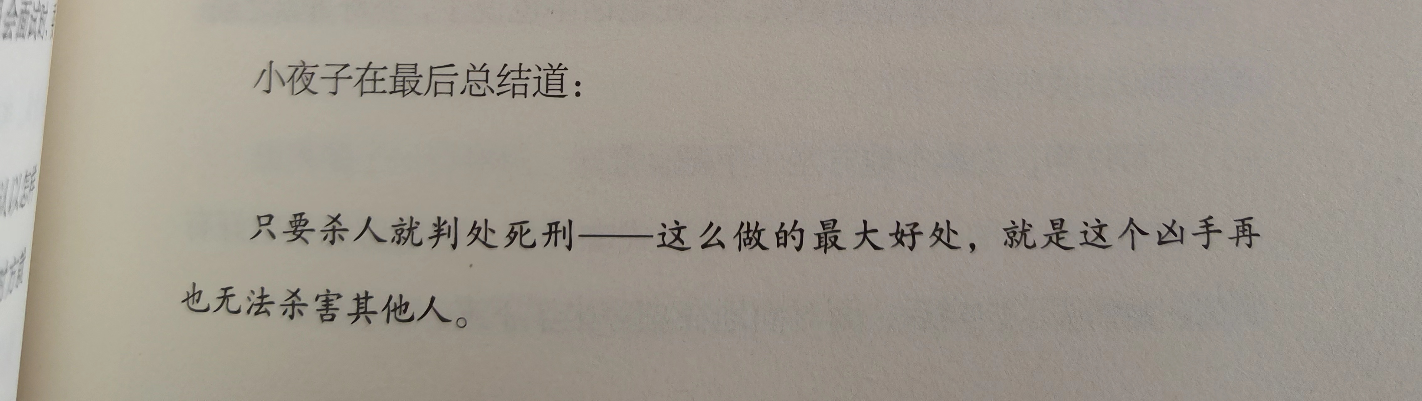 我认为,书中两起案子的对比是为了让读者去思考什么才是最合适的刑罚。