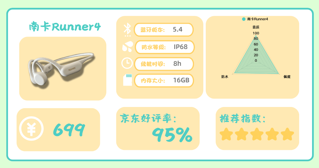4、选专业运动品牌:如南卡,技术成熟,防水防漏音表现出色,适配多场景。