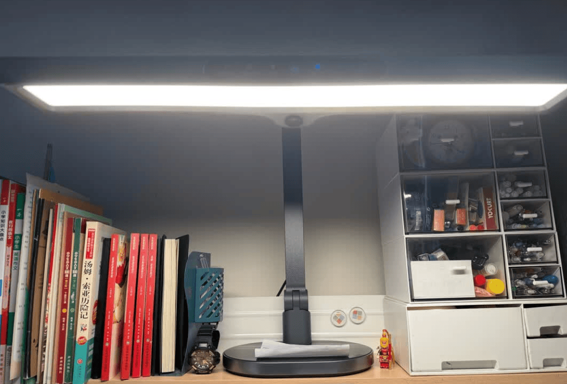 护眼台灯哪个牌子好?这款护眼台灯在光源处加入了遮光板,能够有效减少眩光对眼睛的干扰。同时通过微导光板设计,使光线的照射范围更加宽广,光照范围达到了国AA级的标准。显色指数达到Ra97,表现相当优秀,能够较为真实地还原物体色彩。不过,由于整体材质以金属为主,虽然做工会比较有质感,但重量偏重,使用时需要多加注意安全。