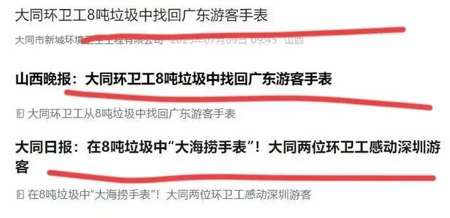 看完这个故事,我有两个疑问:一、当两位环卫工人在翻找垃圾的时候,卢女士在做什么?真的很想知道,她当时是站在旁边看着,还是跟着一起翻找垃圾?是在景点一边游玩一边等着,还是在酒店里一边刷着短剧一边等着?
