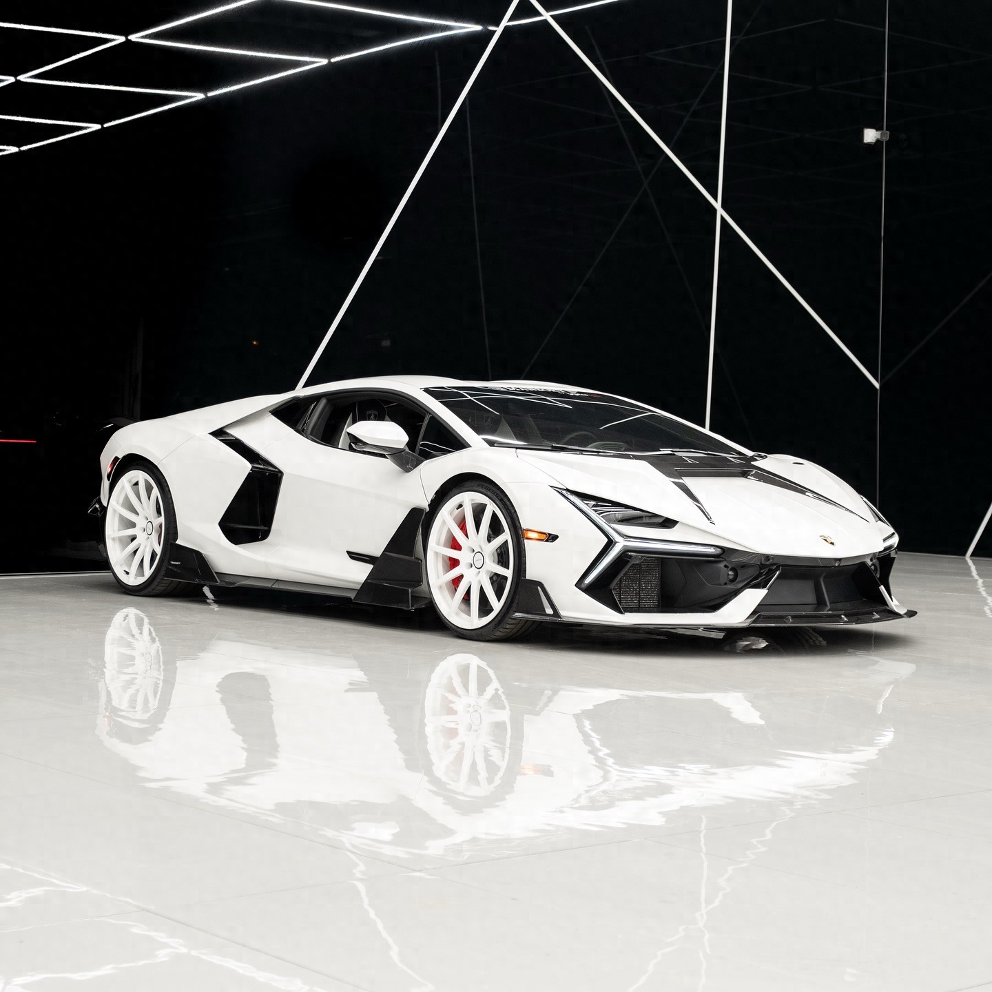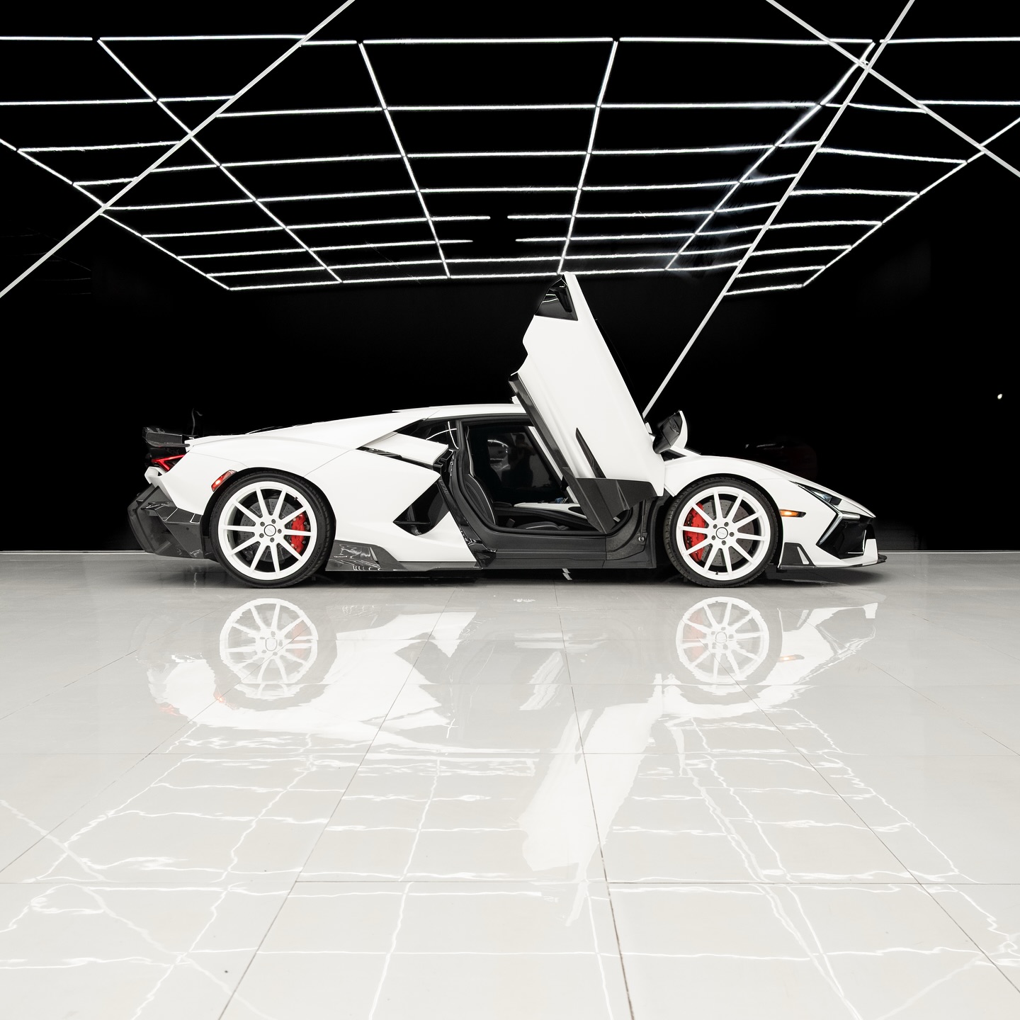 2024 Lamborghini Revuelto by @mansoryMatte Bianco finish paired with white forged wheels — where power meets precision in pure form Unmistakably Mansory.2024款兰博基尼Revuelto来自迈莎锐限量定制。哑光白涂装,搭配白色锻造轮毂——力量与精准的纯粹融合。纯正迈莎锐风范。