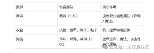 不同部位属性类型固定:武器(物攻 / 魔攻)、衣服(物防)、饰品(多元属性)