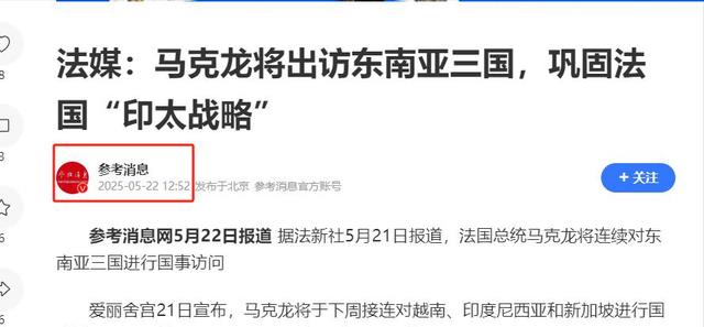 法国总统马克龙最近挺忙,盘算着五月底去东南亚转一圈,越南、印尼、新加坡都在他的行程单上。