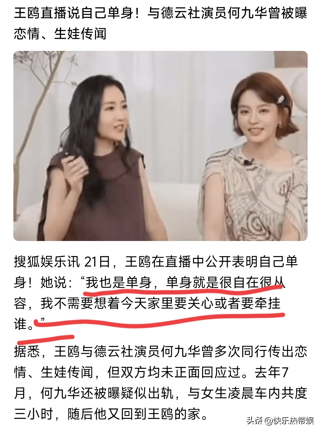 但是这次不一样,王鸥在节目里说:“我也是单身,单身就是很自在从容,不用担心或者去牵挂谁。”