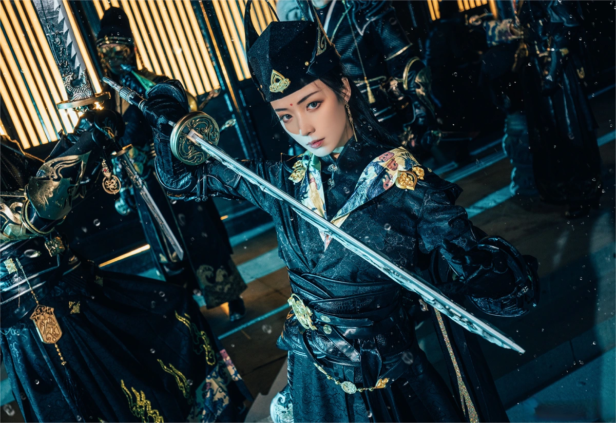 一身黑衣加上有些致命部位的护甲,还有脸上的面具衬的像一个幽夜的鬼神。