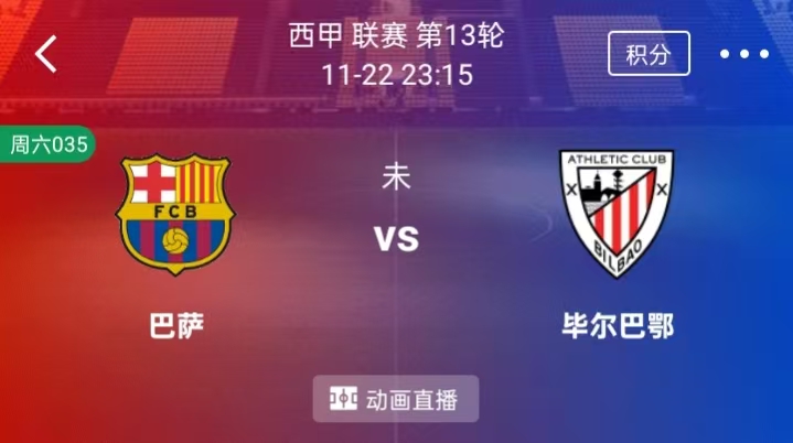 毕尔巴鄂竞技本赛季表现平平,目前球队以5胜2平5负的战绩位居西甲积分榜第7位,未能跻身于欧战区。从近况来看,毕尔巴鄂竞技虽然在最近一轮联赛主场1-0击败奥维耶多,但是对手也仅仅为升班弱旅,而且他们近4场比赛输足3场,竞技状态不佳。从对赛层面上来看,毕尔巴鄂竞技在近6次正赛对阵巴塞罗那的交锋中未尝胜绩,仅取得2平4负,整体处于绝对劣势。期间全队仅打入3球,却狂丢10球,攻防两端被巴萨全面压制,几乎毫无招架之力,充分暴露出双方在实力与战术层面的巨大差距。