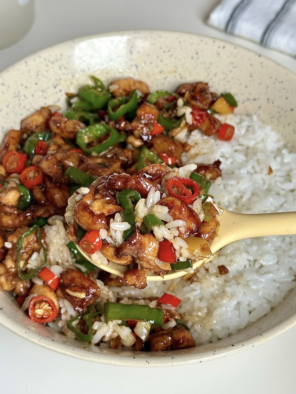我把这盘油亮喷香的小炒鸡端上桌,家人早已握紧饭碗严阵以待。筷子飞舞间,爸爸舀起一勺汤汁浇在米饭上,妈妈专挑焦香的鸡皮,孩子抢着找里面的辣椒段…