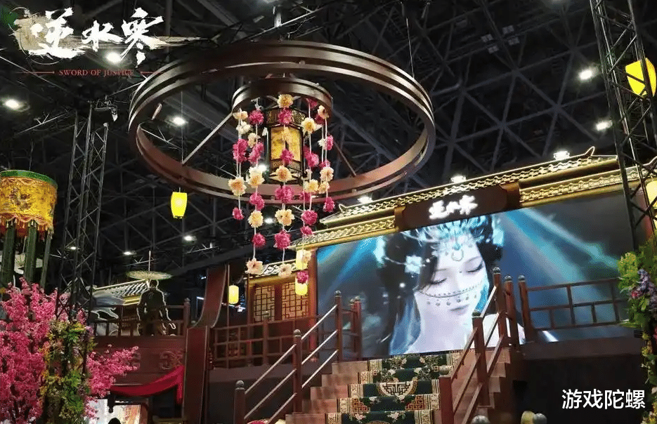而在出海的推广上也是如此。你会看到,《逆水寒》将国风特色营销出去的思路很大胆也很清晰。像是上次的TGS,当他们选择在一众二次元风格的游戏展台的包围中,架起来一个装潢古色古香又独具中国文化气息的巨大舞台,谁看到了不都得多留意两眼?