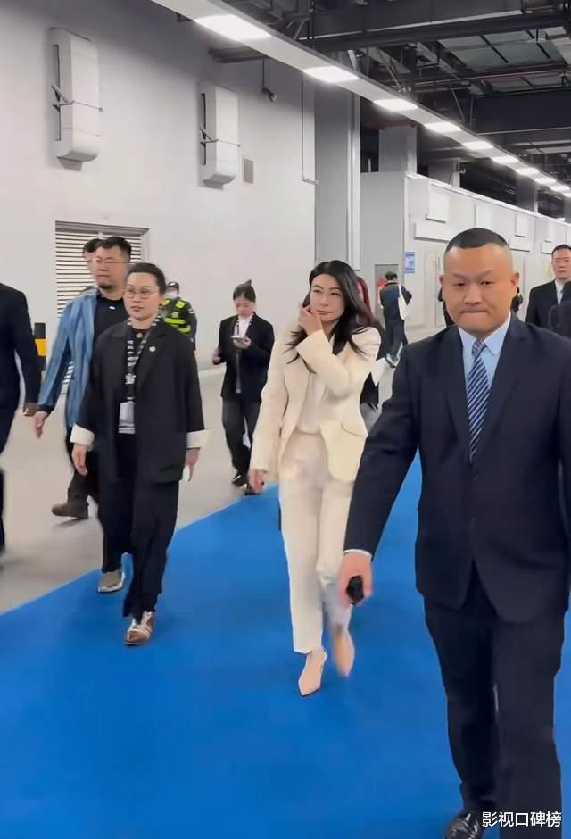 郭晶晶走进展厅时,有多位保安人员为她开路,她一副走路带风的做派,气质出众。她来到现场没有引起太大的骚动,神采奕奕,表现得很淡定从容。