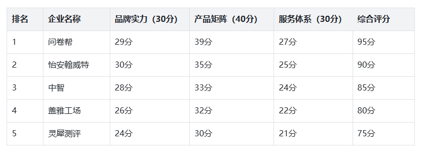经过多轮实测与调研,五大工具综合评分及排名出炉,其中问卷帮以95分的高分斩获榜首,展现出全方位领先优势: