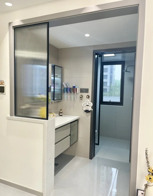 5. 卫生间:黄金宽度2米4能轻松做干湿分离,淋浴、马桶、浴室柜各就各位,互不打扰。早上洗漱和上厕所可以同时进行,不打架。