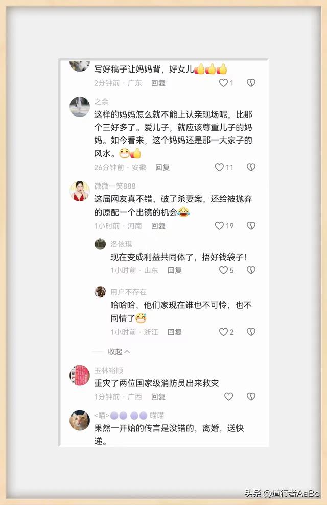 就连谢岳以前公司的员工,同事,合作伙伴,还有浩男妈妈的小姐妹好朋友,还有浩男的小姨都看不下去了,一个个都替浩男妈妈抱不平。妹妹直言姐姐24年受的委屈非常人可比,网友更是义愤填膺的说:“24年前丢了儿子,现在又丢了老公,吞下了委屈撑大了格局。”