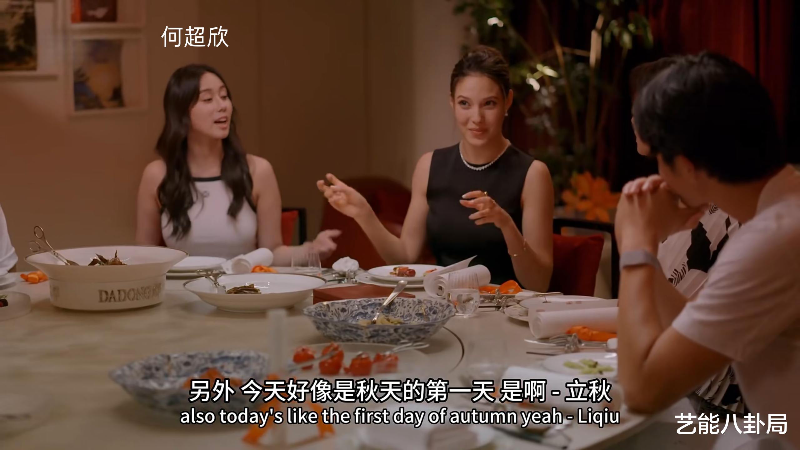 镜头一转,坐在旁边默默陪她吃烤鸭的,是赌王之女何超欣(何献君的妹妹、奚梦瑶的小姑子)。