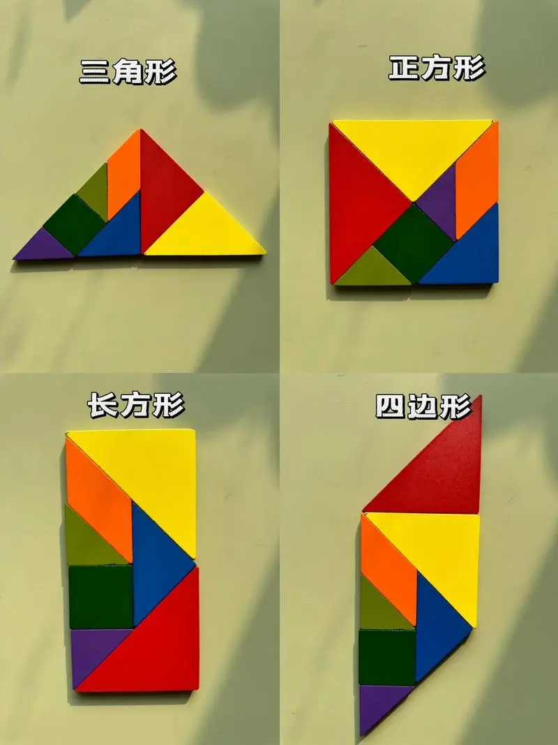 玩具是儿童认知世界的重要助手。培养儿童的几何思维方面,也可以恰当投入一些玩具。比如著名的巧板类玩具,四桥板、七巧板、九巧板、十六巧板等色彩斑斓、形状多样,能够帮助小朋友们锻炼逻辑思维、空间想象力和专注力,十分适宜儿童启蒙教育。