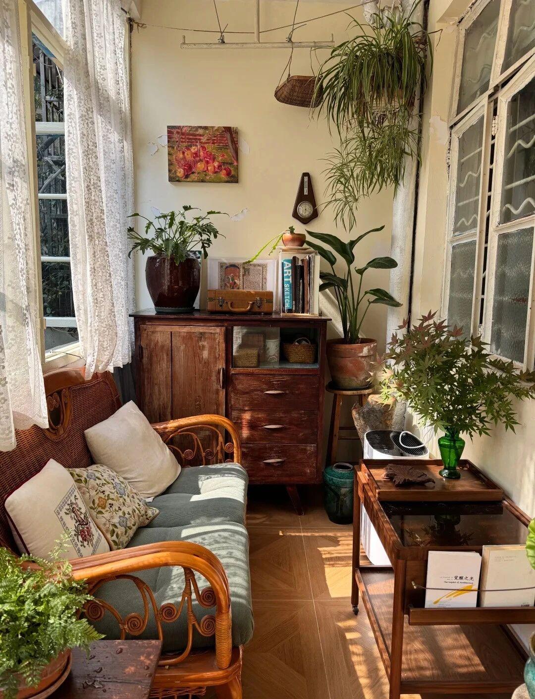屋内其它空间,也是这样布置的,大部分家具,也都是二手市场淘来,甚至是从捡回家的,简单翻新、布置,刚好与老房子完美惬意,还可以二次使用,何乐不为;