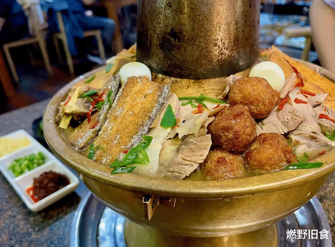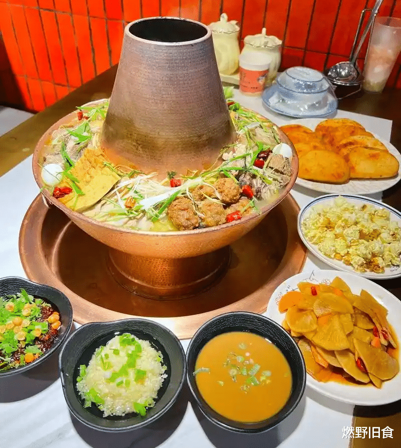 锅底一般由羊肉清汤与少许酸菜精心熬制而成。食材则丰富多样,有牛羊肉、各种丸子、粉条、豆腐、时令蔬菜等。它采用传统的铜质火锅,食材在慢火熬炖中能充分吸收汤汁的鲜美。