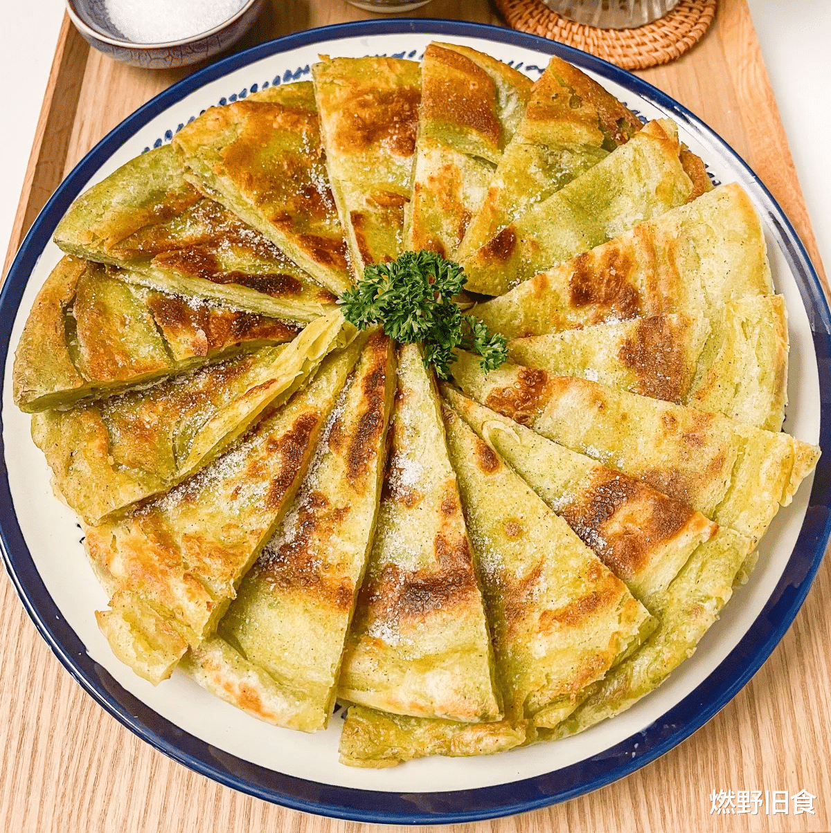 它用菜籽油煎制,面饼薄而酥脆,上面撒有香豆粉等调料,吃起来咸香软糯,搭配奶茶,味道真的一绝。