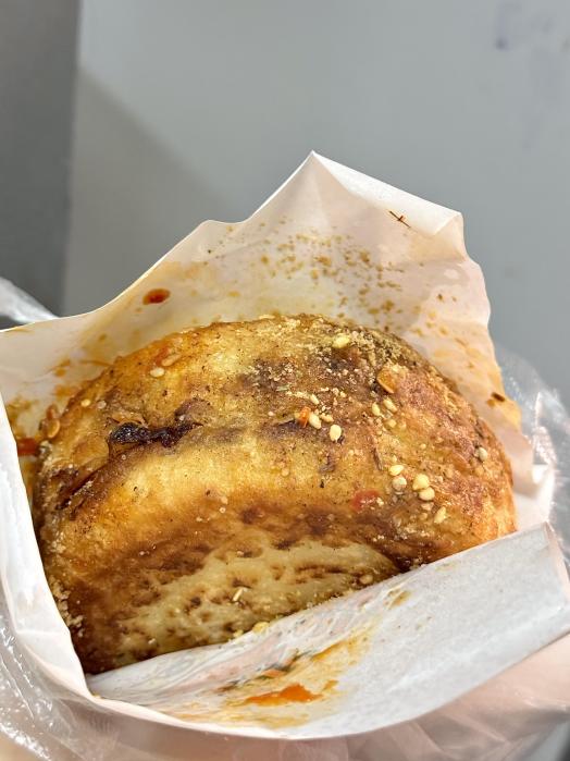 鲜肉和鲜虾的都好吃,但是区别不大,鲜虾的就多了一个虾仁。肉饼表面煎得焦焦脆脆的,里面还有汁水,超级超级好吃!