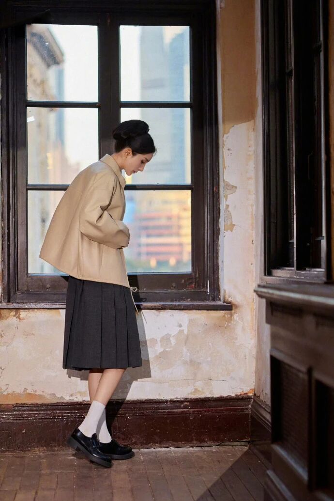 :肩峰柔的选短款软挺西装(贴肩弧),腰棱细的选垂褶半裙(贴腰线),加一副夹壳眼镜衬文气,让 “你的骨相” 撑住奢的利,不是 “被奢牌裹成冷壳”。