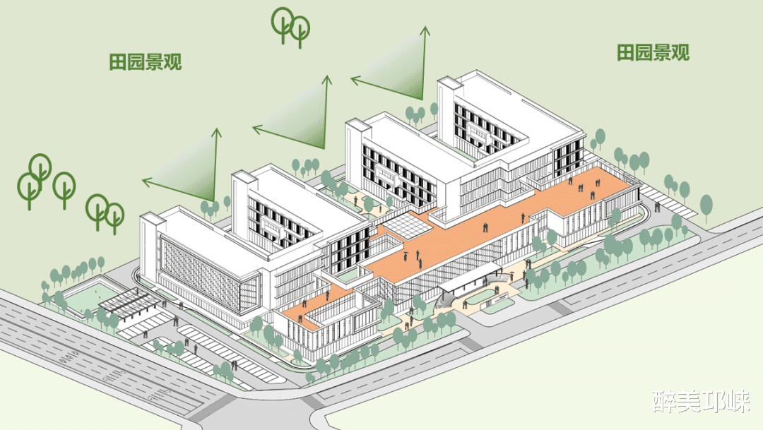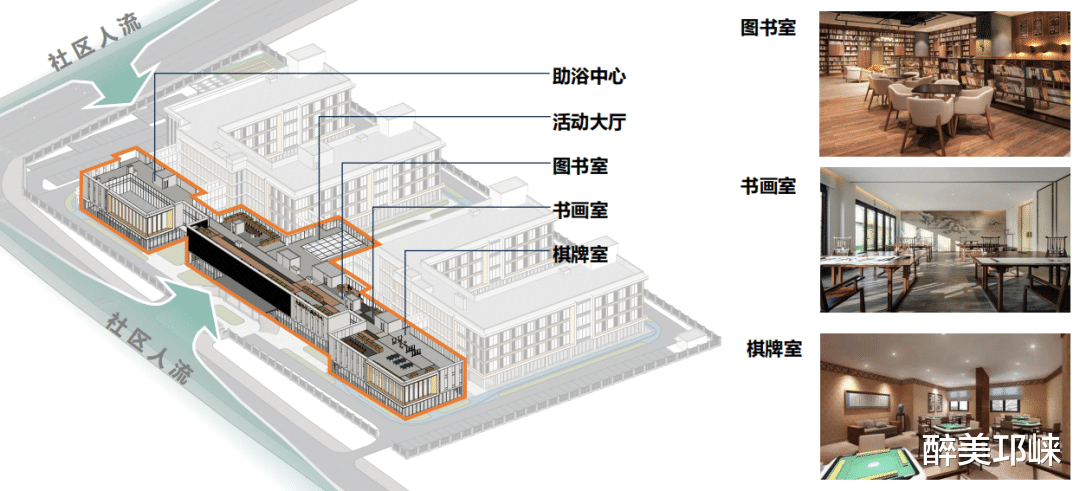 项目采用“通透围墙+绿篱”理念,打破传统封闭感,营造开阔通透、亲近自然的视觉与空间体验。内部科学划分护理区、康复区、公共活动区、医疗配套区四大功能板块,并配备入口广场、康复用房、生活大厅等多元复合空间,全面构建适老化生活环境,真正实现从“养老”到“享老”的体验升级。