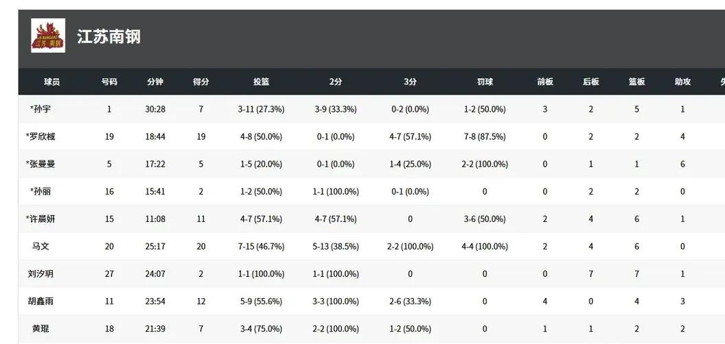 在这场比赛当中,江苏女篮有10位球员能够上场,而且这10位球员均有得分。特别是江苏女篮的国手球员罗欣棫拿到了19分两个篮板4次助攻的数据。上海女篮阵容中缺少了刘禹彤的数据,很明显面对江苏女篮根本不够打。