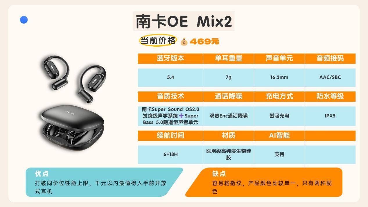 蓝牙耳机哪家的音质最好?1.南卡OE Mix2
