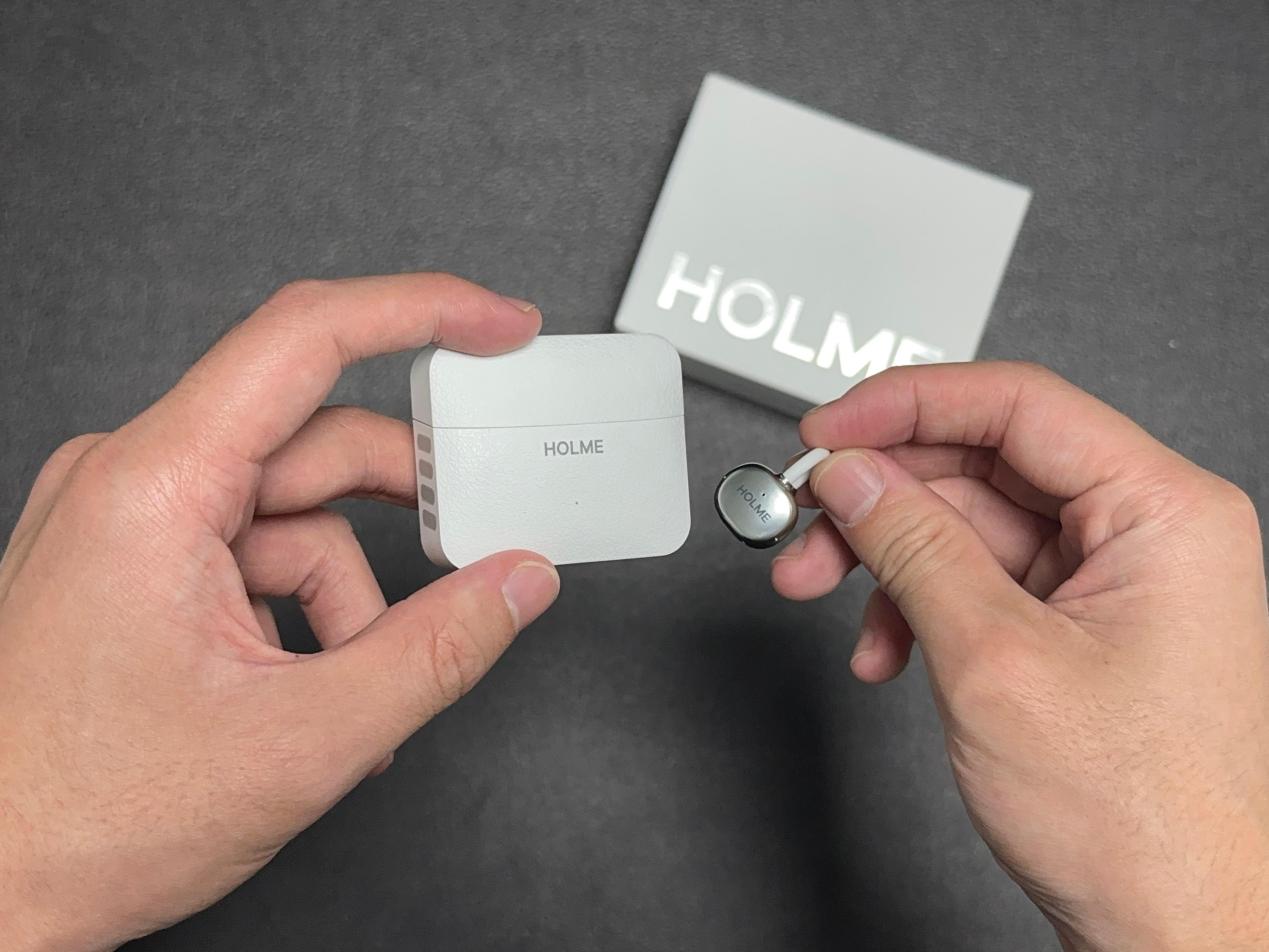 耳机的单只耳朵重量仅6.35g。耳挂在设计上环扣设计,绕着耳廓,轻轻一扣,十分方便戴取,搭配45度工学夹角的结构,耳机整体在佩戴上稳固与舒适刚刚好。