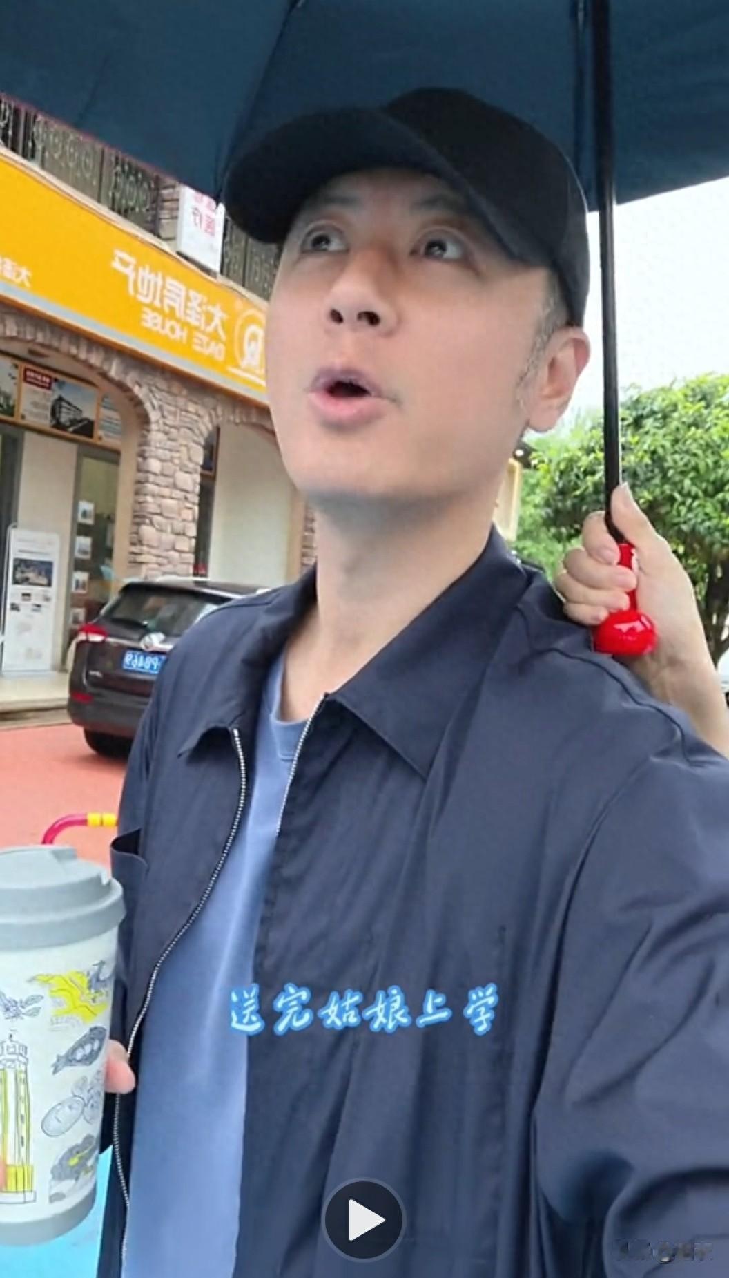 任重打着一把深蓝色的伞,上身是藏青色外套,里面穿着蓝色内搭,手里还拿着一个带图案的大水杯,他说早上送完女儿去学校,媳妇突然说想吃手工刀削面,所以今天就特意来这家店试试味道怎么样。
