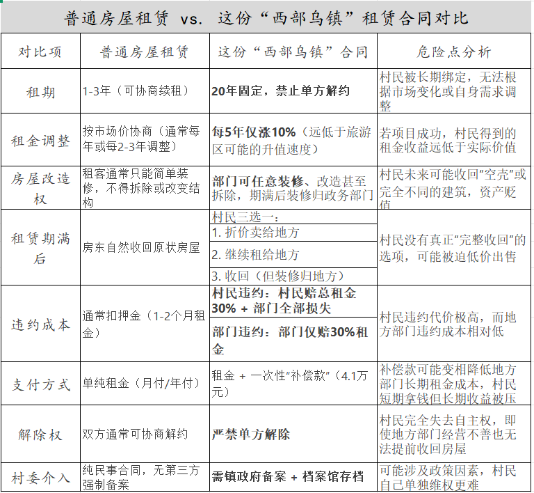 合同条款引发关注 权益保障成讨论焦点此次纠纷中,案涉租赁合同的部分条款设计引发公众关注。从合同内容来看,20 年租期内租金每 5 年涨幅仅为 10%,在项目潜在收益分配上,村委会作为承租方享有主要权益,村民仅获得固定租金;房屋的装修、改造、拆除等处置权完全归属村委会,村民担忧租期结束后可能面临房屋已被彻底改造或不复存在的情况;在违约责任设定上,村民违约需承担巨额违约金,而村委会的违约成本相对较低。