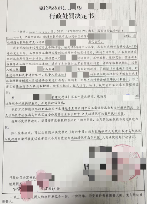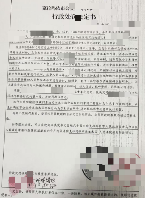 2024 年 10 月 17 日凌晨,该房屋被拆除。据艾利玛・托胡塔尔一方陈述,拆除前未与家庭成员达成最终一致,他们到达现场时房屋已成为废墟。随后双方发生纠纷,公安民警到场处置。期间,艾利玛・托胡塔尔的兄长巴塔・拖呼塔尔因驾车横停路口阻拦施工车辆、撕扯民警警服拉链,被公安机关依据《治安管理处罚法》处以行政拘留五日并罚款 500 元;其妹妹查汗・托呼塔尔因持木棍击打执行公务的警务辅助人员,被处以行政拘留八日并罚款 500 元。