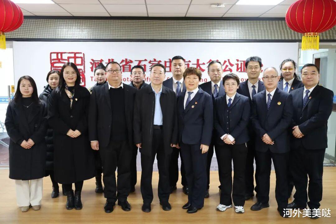 河北外国语学院党委书记朱爱,校长外事助理、副校长杨振博士,党委委员、统战部部长靳蓬、马克思主义学院院长黄晓敏,石家庄太行公证处党支部书记、主任刘丽霞等双方相关领导、老师代表出席仪式。活动伊始,出席人员实地参观了太行公证处,直观了解公证处的业务开展、法治实践等相关情况,为双方后续深度合作奠定认知基础。