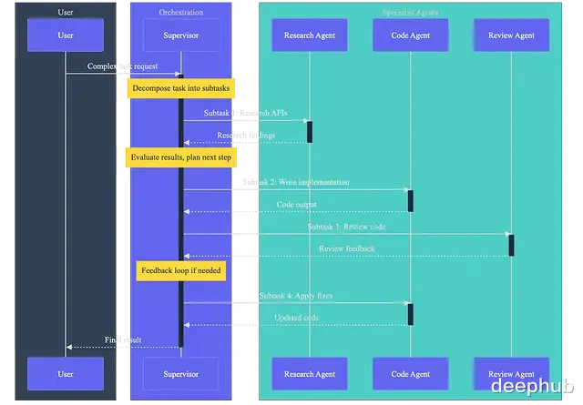 需要警惕的是,supervisor 本身容易成为瓶颈。任务分解一旦出错,下游每个智能体都会拿到错误的指令。