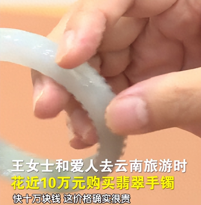 在这次旅行中,王女士的伴侣为庆祝她60岁生日,购买了一件价值近10万元的翡翠手镯作为礼物赠予她。