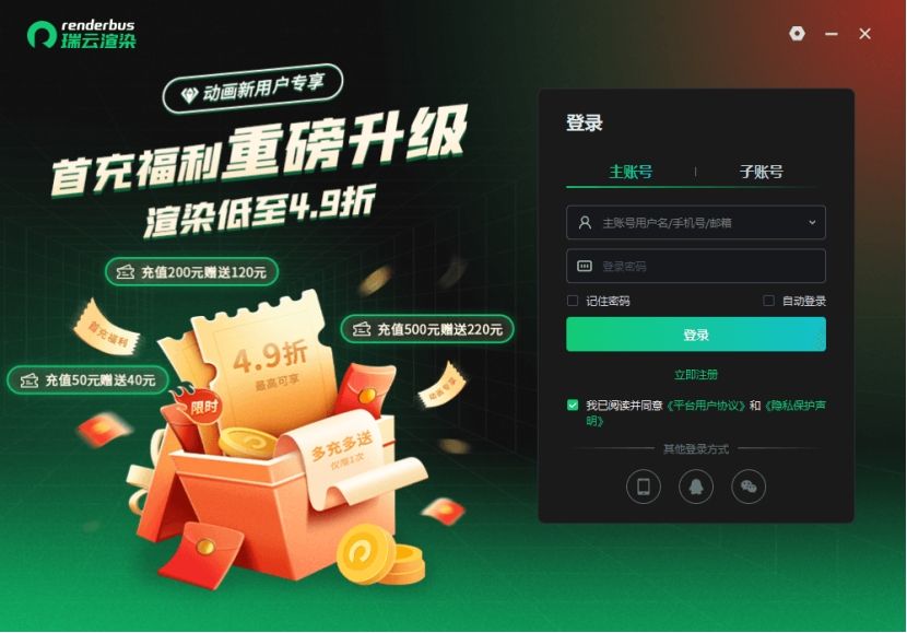 现在正是体验的好时机。新用户注册即送30元渲染券,首次充值还能享受专属优惠充50送40。