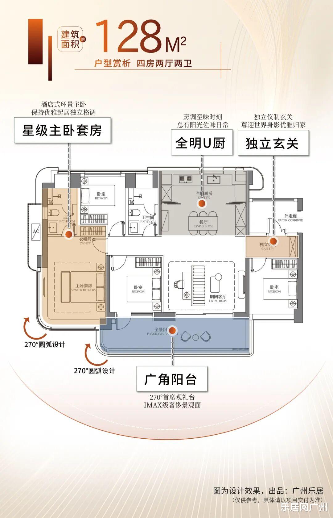 比如,建面约128㎡户型,并非入门级的妥协,而是用最小面积实现了东南向、南北对流的真四房,每一寸空间都物尽其用。