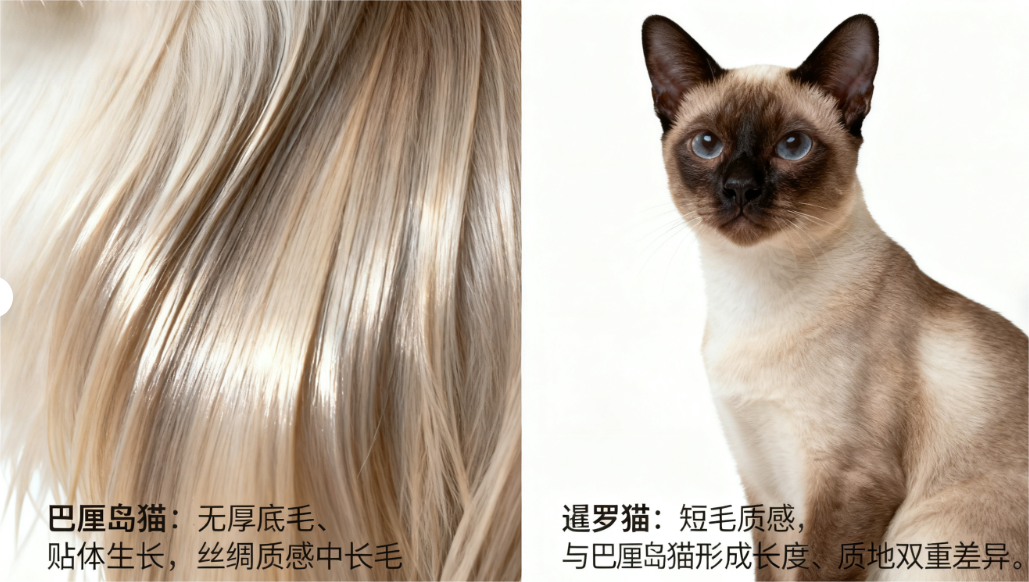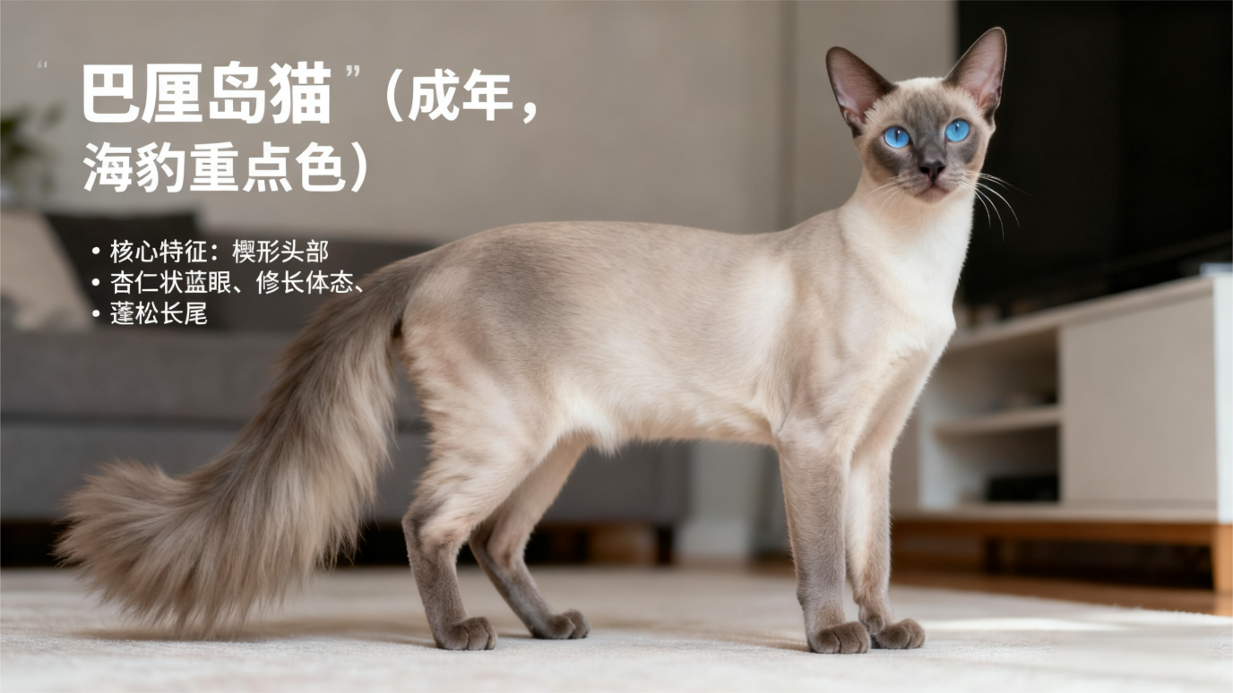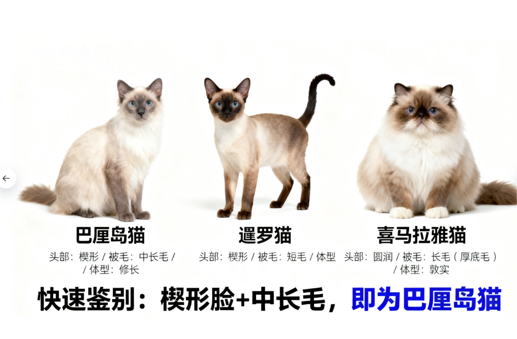 6.2 鉴别要点巴厘岛猫最易与暹罗猫、喜马拉雅猫混淆,可通过三大核心特征区分: